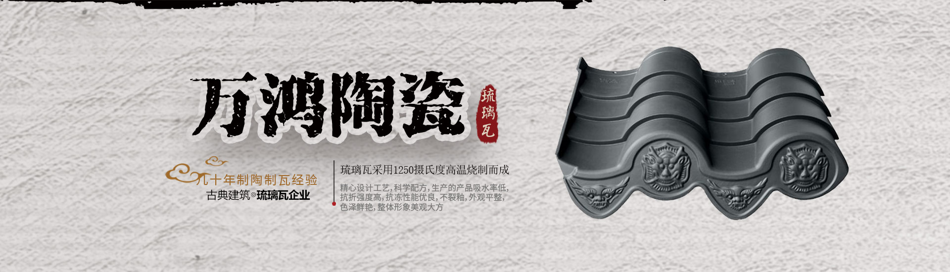 宜興市萬鴻陶瓷有限公司是國內(nèi)生產(chǎn)古建琉璃瓦企業(yè),也是宜興市琉璃瓦行業(yè)龍頭骨干企業(yè)。琉璃瓦采用1250攝氏度高溫燒制而成,公司座落經(jīng)濟發(fā)達的宜興市丁山鎮(zhèn),臨近寧杭高速公路、新長鐵路、錫宜高速和104國道,交通十分便利。 萬鴻陶瓷擁有幾十...